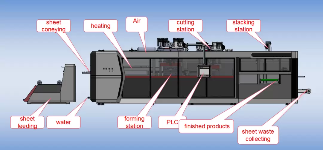 Fully automated operation: The equipment realizes fully automated operations, including feeding, heating, forming, cooling, discharging, etc., reducing manual intervention and improving production efficiency.