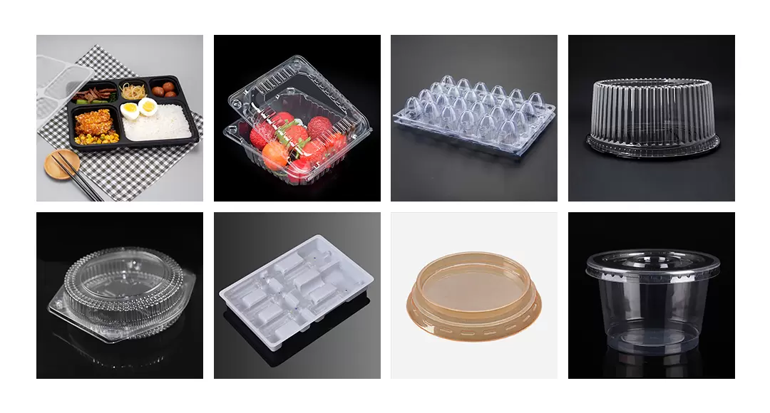 The fully automatic three-station plastic thermoforming machine TTF-820 A is widely used in the production of various plastic products, including but not limited to: