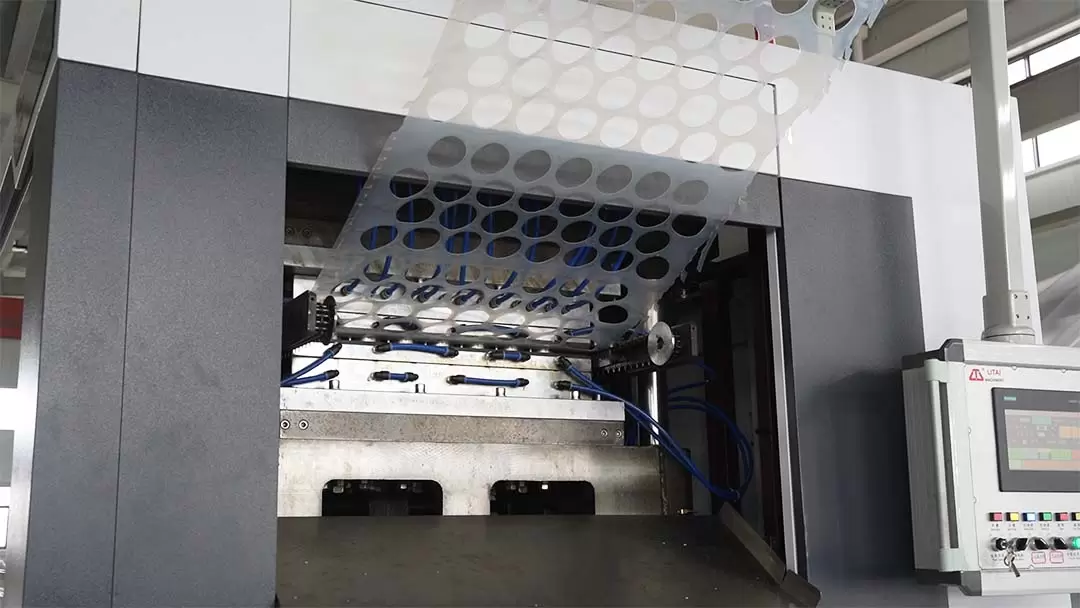 Molding: The heated softened sheet enters the molding mold, and uses vacuum adsorption or pressure molding technology to make it fit the shape of the mold tightly to form the required plastic cup.