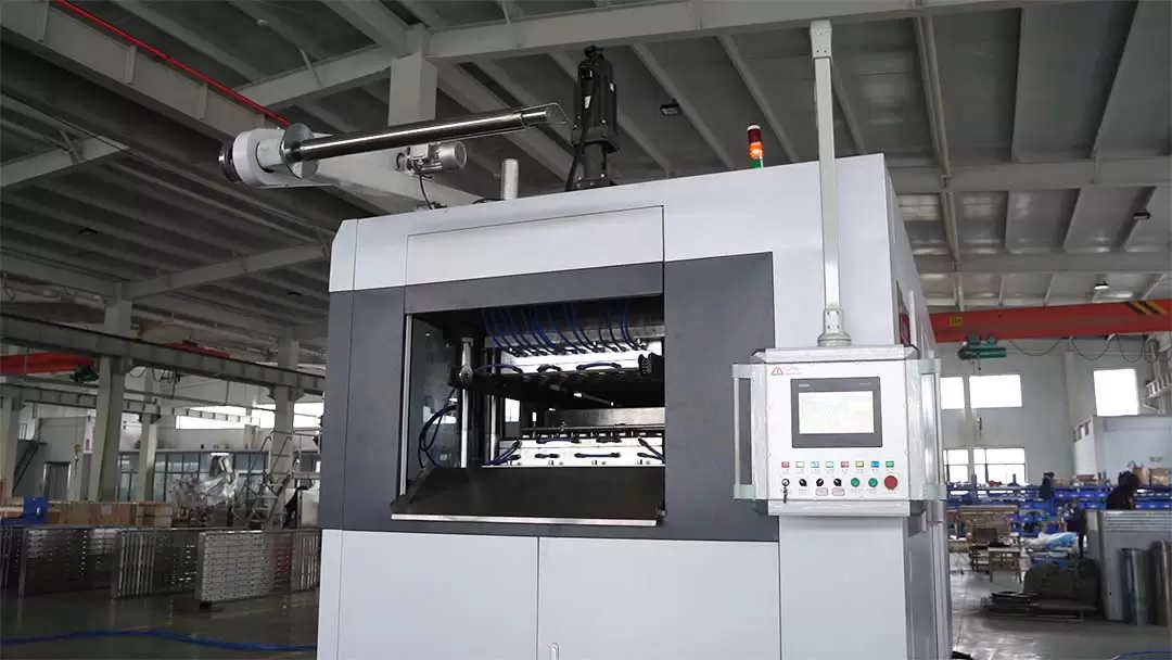 Sheet heating: Plastic sheets (such as PET, PP, PS, etc.) are fed into the heating area and heated to the appropriate softening temperature through electric heating or infrared heating system.