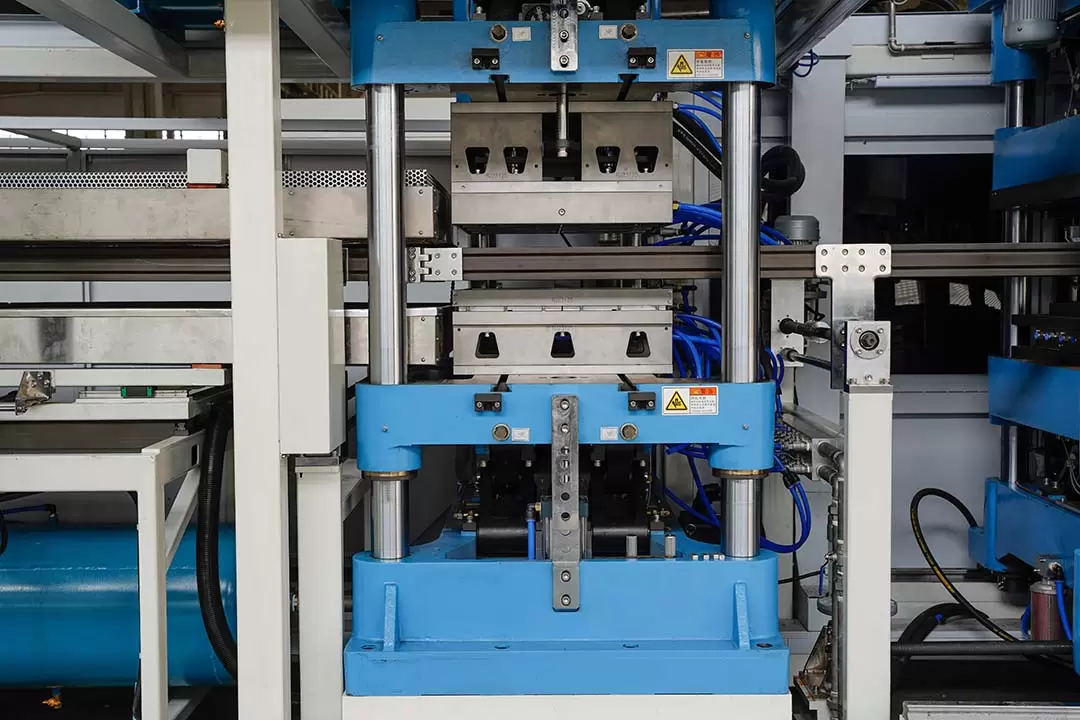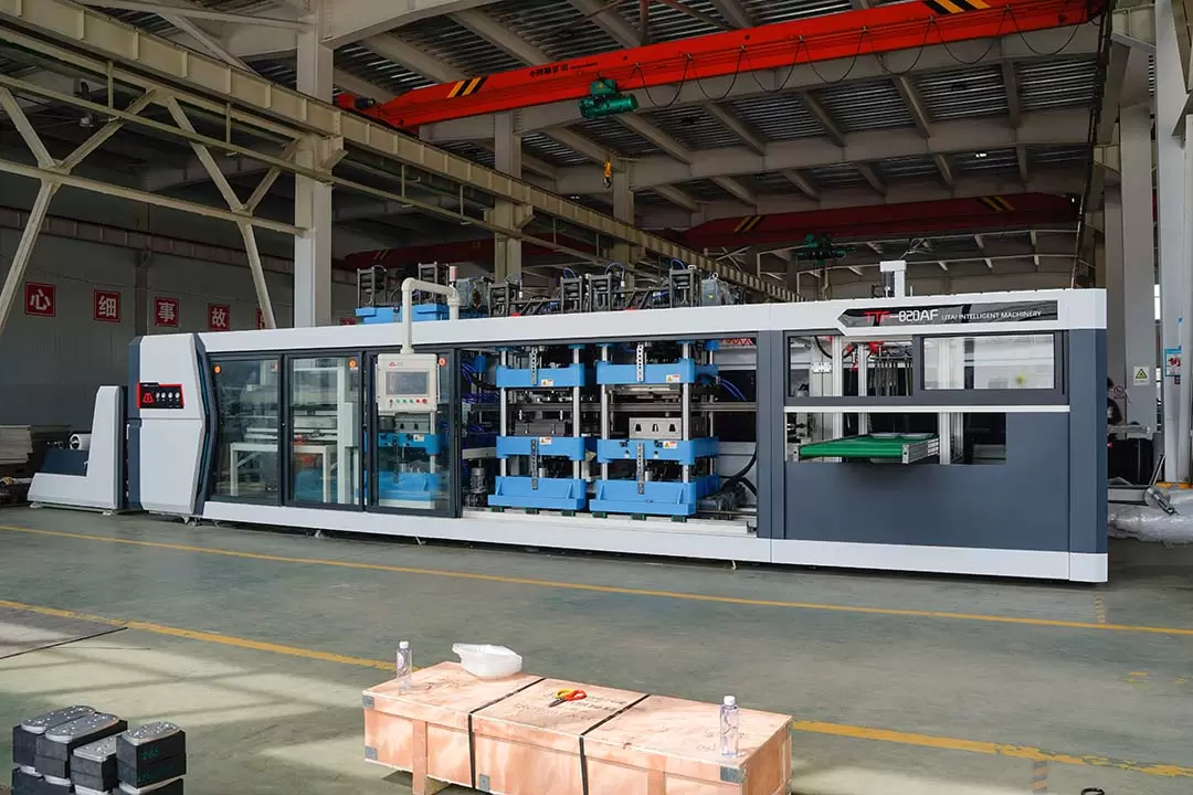The forming system includes an upper mold, a lower mold and a vacuum or pressure forming device. After the heated sheet enters the forming area, the upper and lower molds will quickly close together, and the sheet will be stretched or compressed into the mold shape through vacuum suction or pressure to form the desired product shape. During this process, the forming parameters (such as pressure, time, etc.) can be accurately set through the control system to meet the forming requirements of different products.