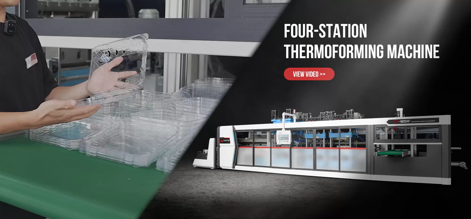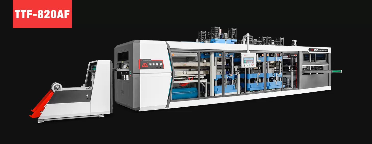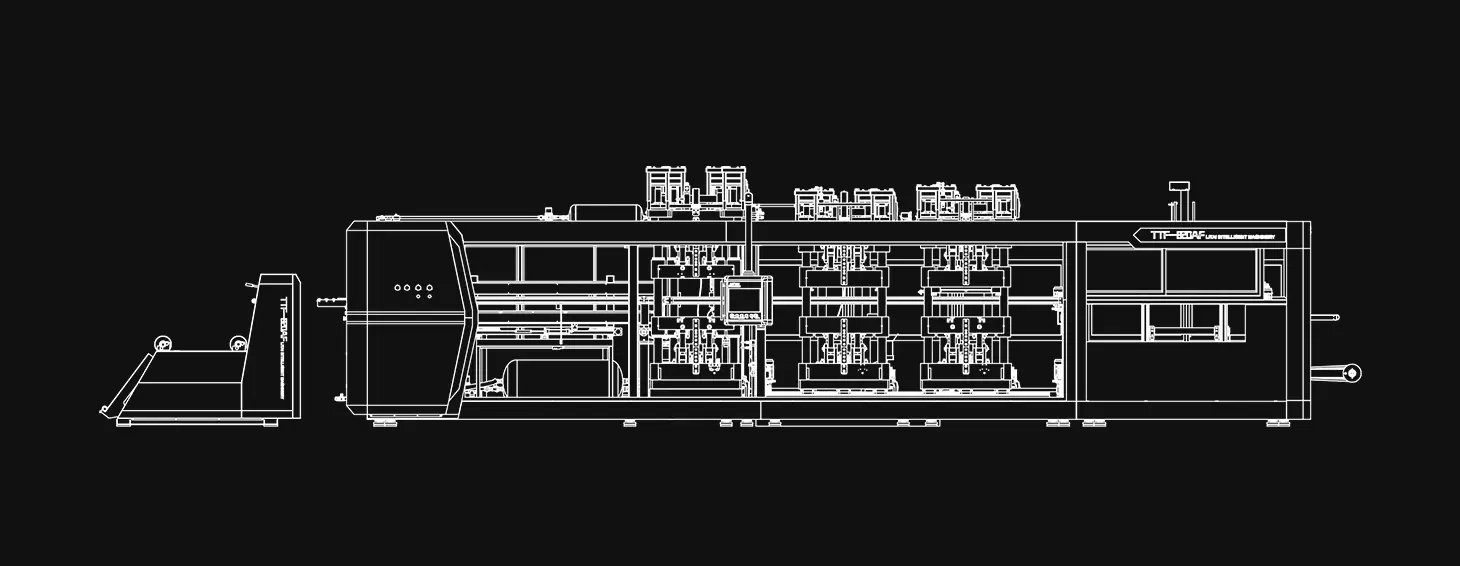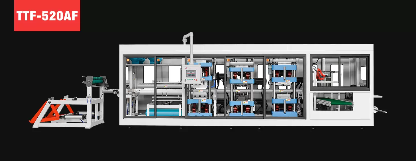 TTF series full-automatic thermoforming machine is our latest developed core product. The plastic thermoforming machine combines forming, punching, cutting, and stacking into process. For the production of disposable plastic products. Suitable for most of the customer requested, it can produce plastic trays, clamshell containers, lunch boxes, lateral hole fruit box, lids, ampoule tray, strawberry and blueberry box, etc plastic containers with holes. The machine is completely driven by servo motor. Stable operation, low noise, high efficiency, high quality.