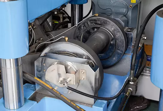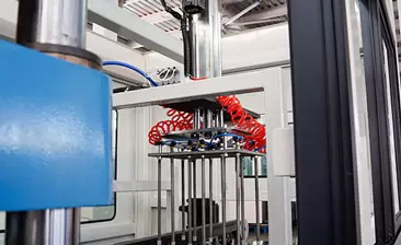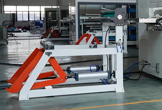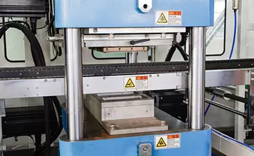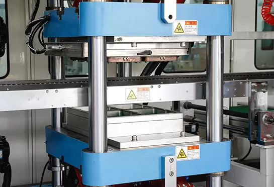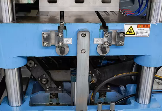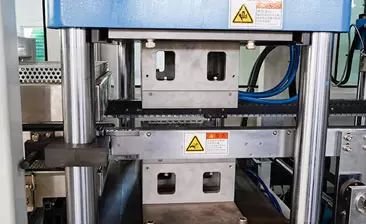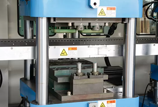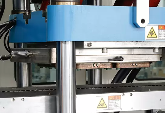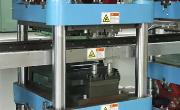 There is a rapid mould change device, which shortens the time for mould change extremely.
