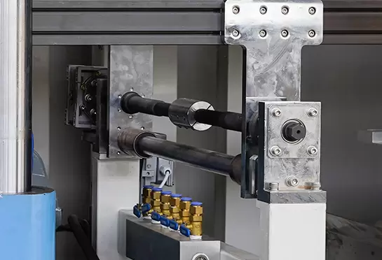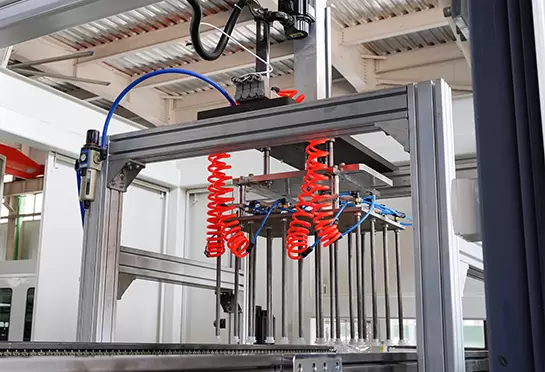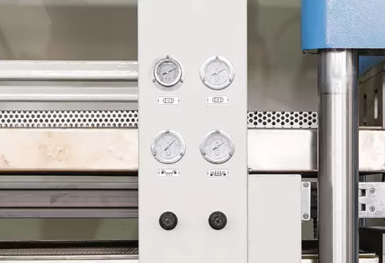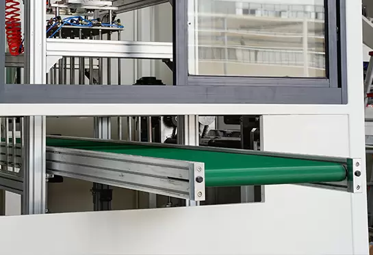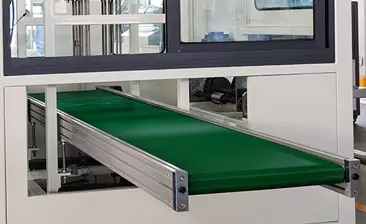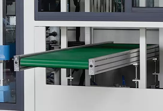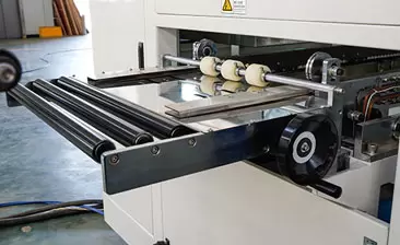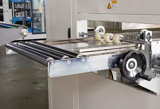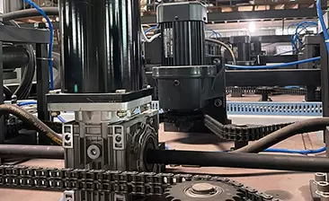 The toothed chain made of 65#Mn, helping convey sheet. Aluminum rails with water cooling, save water.