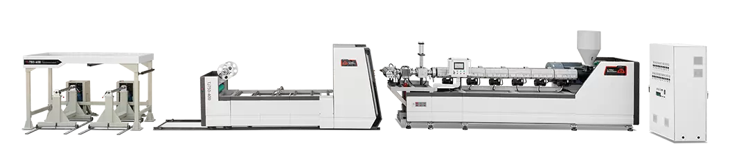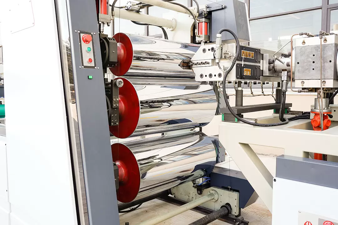 The sheet extruder consists of extrusion, calendering, traction, winding and other parts. The main wear parts have undergone high-quality special treatment and are corrosion-resistant and high-temperature resistant. Low-resistance forces within the die extrusion channel ensure uniform sheet thickness, spiral grooves within the three rollers ensure effective cooling, and hydraulic unit replacement and screen changer installation are easy without stopping the machine.