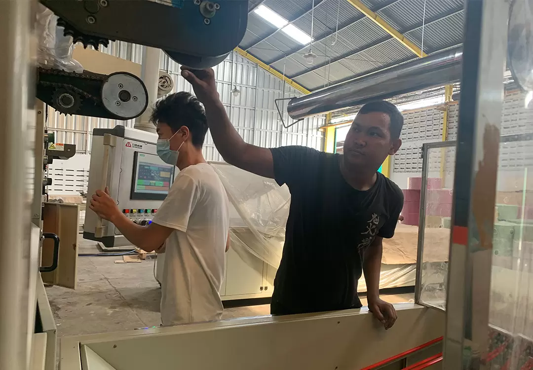 In early August 2023, our team went to Indonesia to visit old customers. This time our team went to the customer's factory and took the equipment commissioning engineer with us. The first purpose is to find agents for plastic thermoforming machines, and the second is to maintain old customers in Indonesia again. Adjust and maintain customers' equipment, and solve common faults and problems in daily production for customers. Customers warmly welcome our team to visit our factory. This customer purchased two TQC-650B plastic cup machines and two TJ-750D PP PS plastic sheet extruders from our company in 2021! our company in 2021!